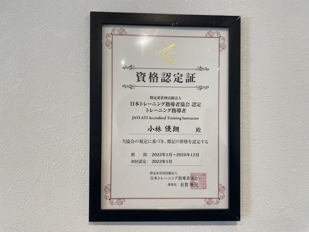 日本のトレーナー最難関であるアスレティックトレーナーを保有しています。
